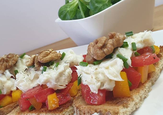 Comment préparer Délicieux Toasts tartare tomates (et pas que 🤭) et fromage italien 🇮🇹