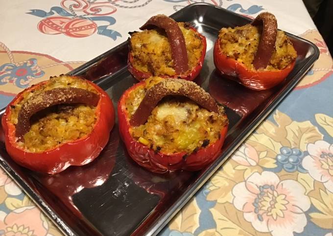 Recette: Savoureux Petits paniers de poivrons farcis aux navets jaunes tomates parmesan et saucisses américaines