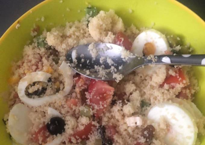 Taboulé maison. Le taboulé est devenu un des must de l'été, je vous propose ma version très fraîche avec du concombre et des herbes du jardin. Plein de saveurs, le taboulé est la salade idéale pour les pique-niques et les barbecues car il ne produit pas de jus et est donc très facile à transporter. Mettez le couscous dans un saladier, couvrez-le d 'eau froide.