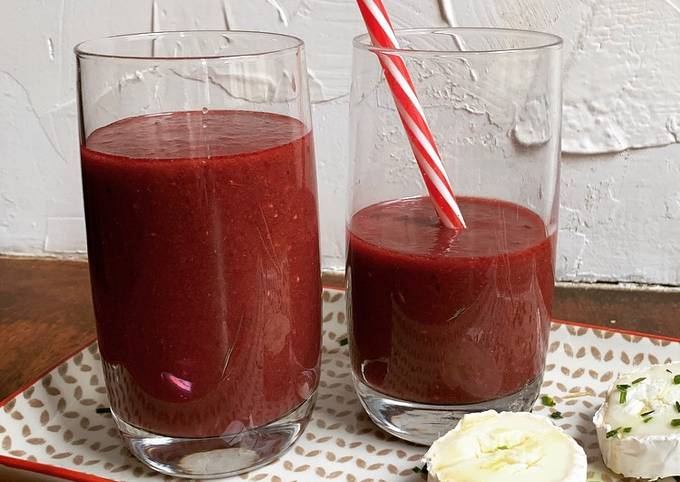 Bonjour à toutes et à tous ! Clarifions tout de suite un point très important : il s'agit d'une recette salée, car sachez qu'il existe aussi des gaspachos et des soupes froides sucrées que l'on peut servir en dessert — d'ailleurs, ce serait une piste. ☆Gaspacho aux Cerises☆. #entree Revisite du traditionnel gaspacho espagnol avec une version originale, fraîche et raffinée qui mêle légumes et fruits ! Un mélange de tomates noires, oignon rouge, ail, pain de mie, vinaigre balsamique, huile d'olive, sel et poivre est mariné au réfrigérateur puis. Vous pouvez avoir ☆Gaspacho aux Cerises☆ utilisant 8 Ingrédients et 6 instructions. Voici comment vous réalisez ça.
